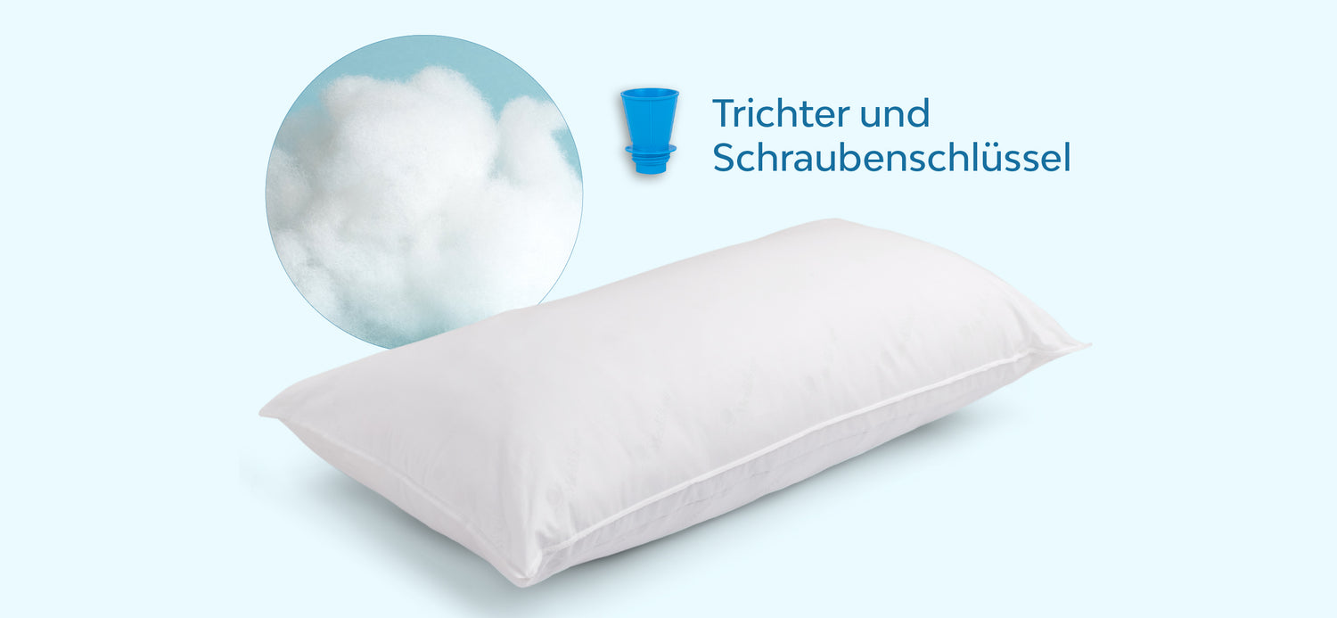 - Jedes Kissen wird mit einem Trichter und einem Schraubenschlüssel geliefert, damit das Befüllen ein Kinderspiel ist.
