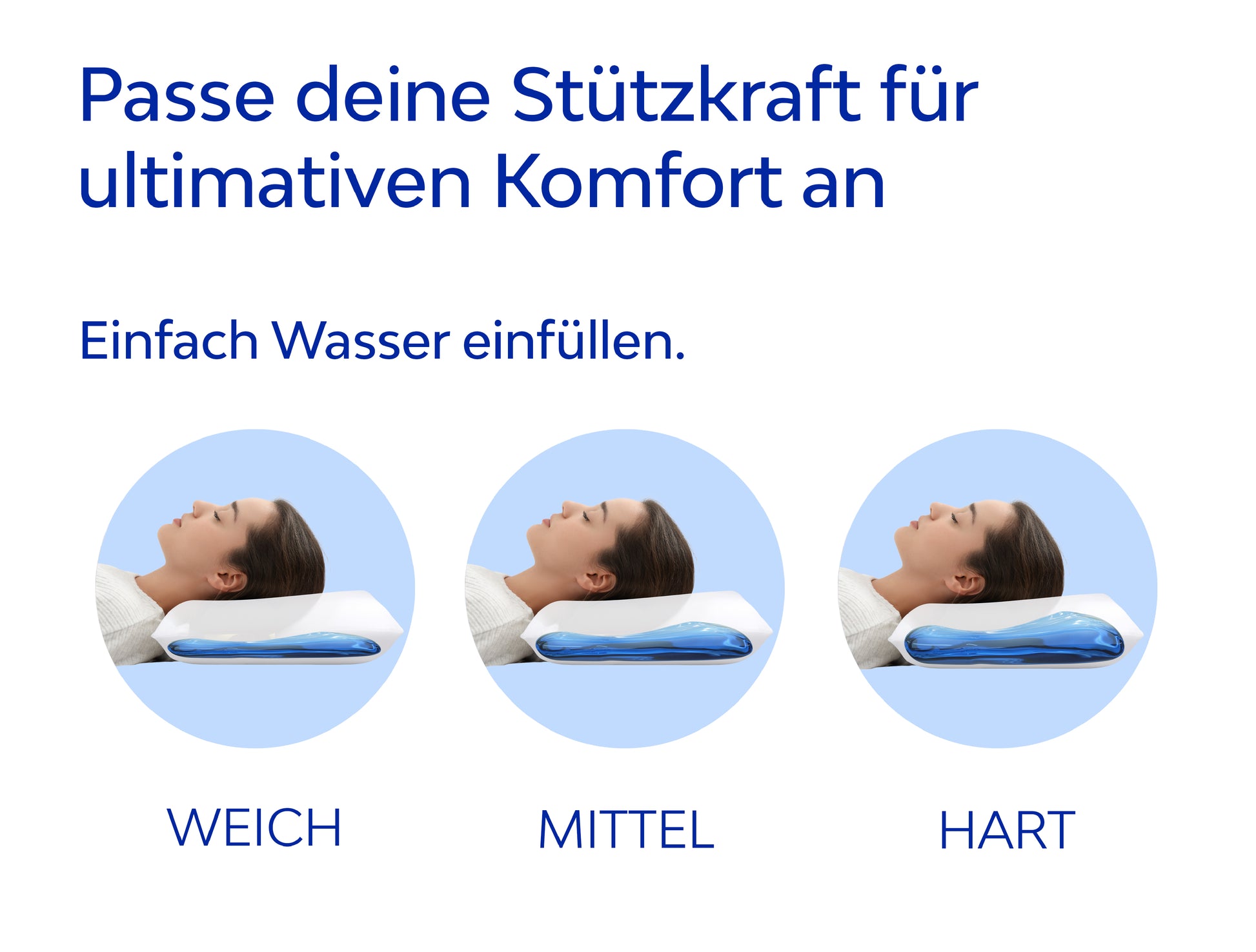 Das Wasserkissen passt sich mühelos an deine bevorzugte Schlafposition an undbietet deinem Kopf und Nacken eine individuelle Stützkraft für einen tiefen undungestörten Schlaf.